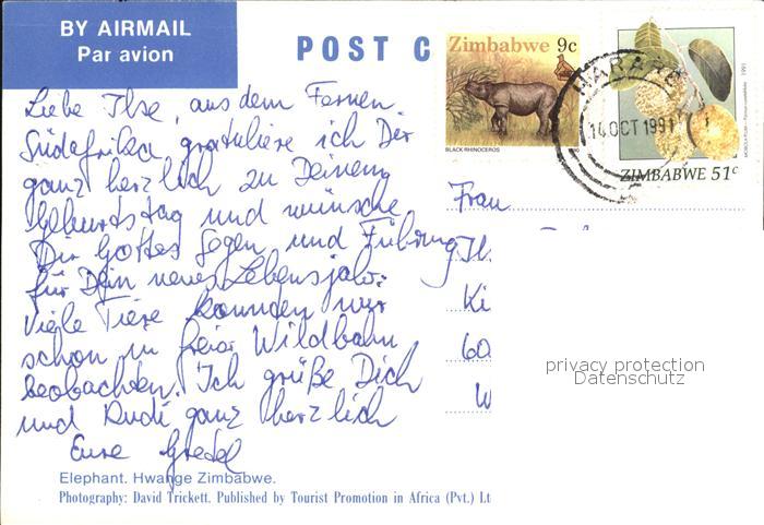 alte Postkarte Elefant Hwange Zimbabwe postalisch gelaufen Erhaltung siehe scans