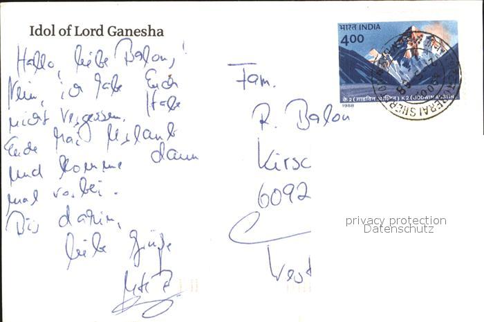 alte Postkarte Elefant Idol of Lord Ganesha postalisch gelaufen Erhaltung siehe scans