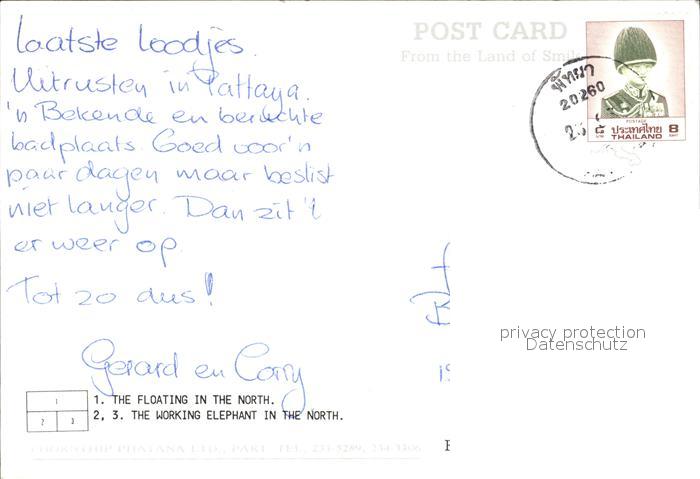 alte Postkarte Elefant North-Thailand Floating Working Elephant postalisch gelaufen Erhaltung siehe scans