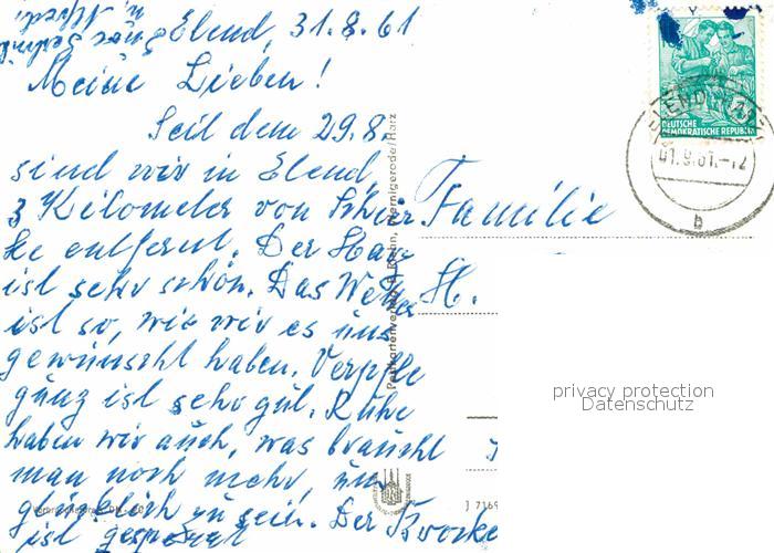 72632400 alte Postkarte Elend Harz Bahnhof Ferienheim Voelkerfreundschaft Waldfreibad Kirche Ausstrieb Hoehenluftkurort postalisch gelaufen Erhaltung siehe scans [FriedD77] KatCode: 11110015085105