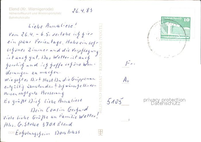 72009097 alte Postkarte Elend Harz Bahnhofstrasse postalisch gelaufen Erhaltung siehe scans KatCode: 11110015085105