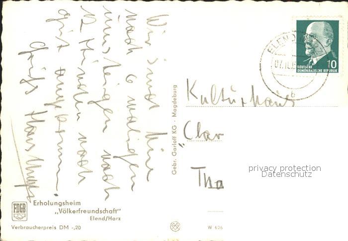 72357828 alte Postkarte Elend Harz Erholungsheim Voelkerfreundschaft postalisch gelaufen Erhaltung siehe scans KatCode: 11110015085105