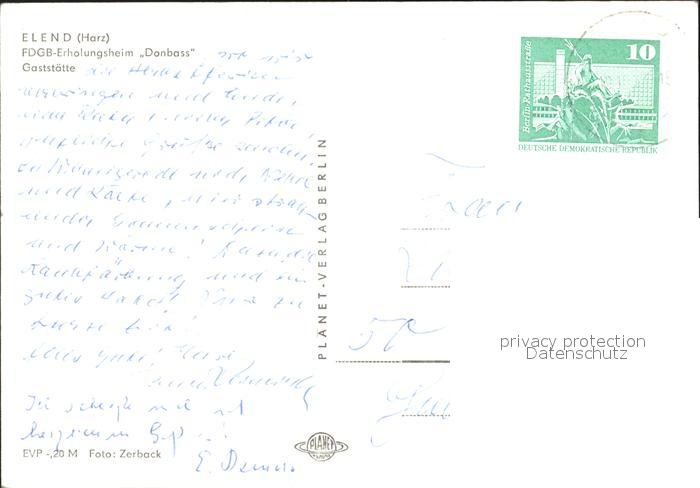 72085380 alte Postkarte Elend Harz FDGB Erholungsheim Donbass Gaststaette postalisch gelaufen Erhaltung siehe scans KatCode: 11110015085105