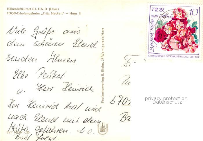 72952553 alte Postkarte Elend Harz FDGB Erholungsheim Fritz Heckert Haus II postalisch gelaufen Erhaltung siehe scans [FriedD77] KatCode: 11110015085105