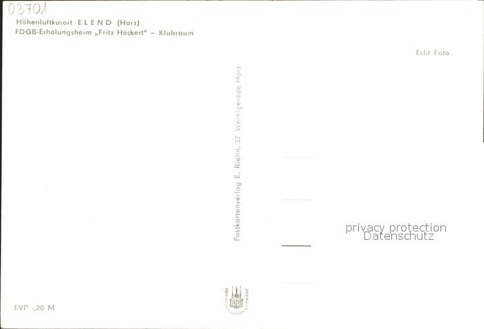 72177647 Elend Harz FDGB Erholungsheim Fritz Heckert Klubraum postalisch nicht gelaufen Erhaltung siehe scans KatCode: 11110015085105
