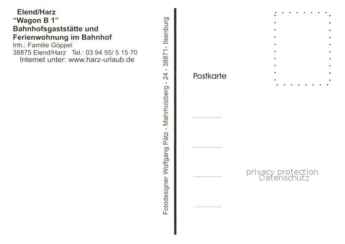 73210271 Elend Harz Gaststaette Wagon B 1 Dampflokomotive Ferienwohnung postalisch nicht gelaufen Erhaltung siehe scans [FriedD77] KatCode: 11110015085105