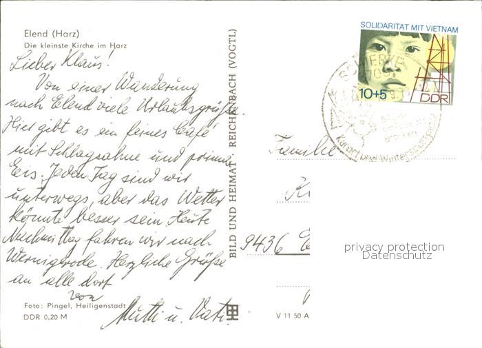 72299054 alte Postkarte Elend Harz Kleinste Kirche im Harz postalisch gelaufen Erhaltung siehe scans KatCode: 11110015085105