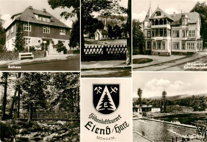 73920107 alte Postkarte Elend Harz Rathaus Kirche Waldmuehle Elendstal Waldfreibad postalisch gelaufen Erhaltung siehe scans [WerneD78] KatCode: 11110015085105