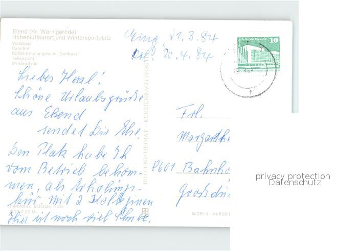 72199023 alte Postkarte Elend Harz Waldbad Bahnhof FDGB Erholungsheim Donbass Elendstal postalisch gelaufen Erhaltung siehe scans KatCode: 11110015085105