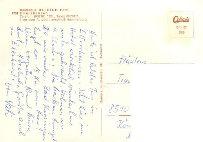 73885211 Elfershausen Bad Kissingen Unterfranken Ullrich Hotel Gaestehaus postalisch nicht gelaufen Erhaltung siehe scans [FriedD77] KatCode: 11110009672121