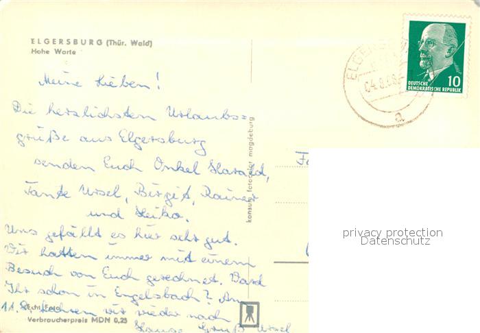 73101918 alte Postkarte Elgersburg Hohe Warte postalisch gelaufen Erhaltung siehe scans [KathaD81] KatCode: 11110016070011
