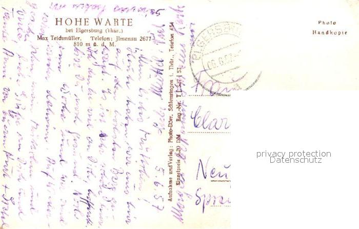 73044754 alte Postkarte Elgersburg Hohe Warte postalisch gelaufen Erhaltung siehe scans [PaolaD17] KatCode: 11110016070011