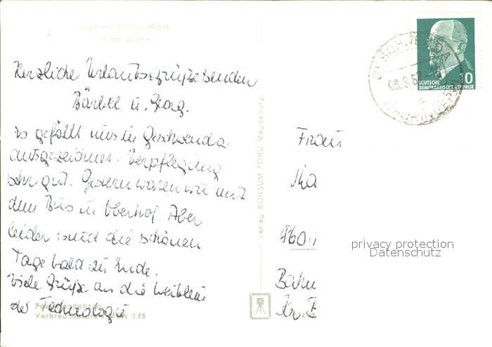 72165634 alte Postkarte Elgersburg Hohe Warte Aussichtsturm postalisch gelaufen Erhaltung siehe scans KatCode: 11110016070011