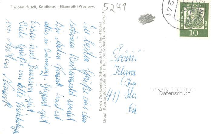73706217 alte Postkarte Elkenroth Gesamtansicht postalisch gelaufen Erhaltung siehe scans [LiesaD40] KatCode: 11110007132025