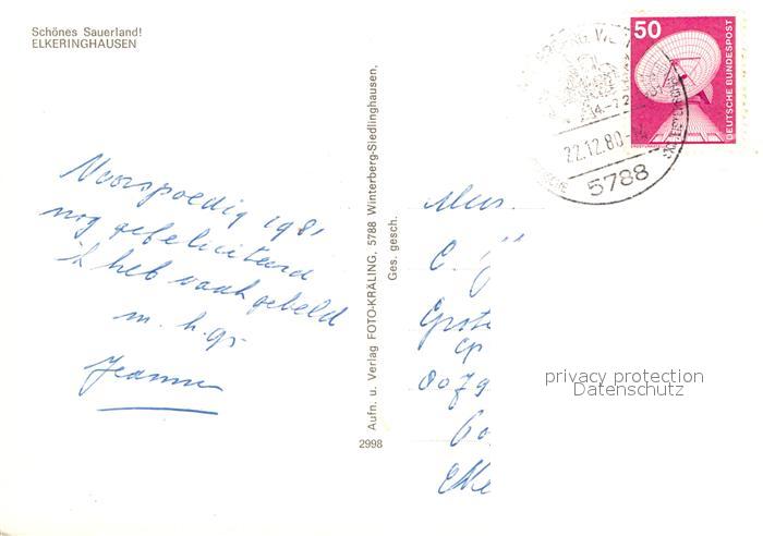 72942875 alte Postkarte Elkeringhausen Winterberg Ortsansicht mit Kirche im Winter postalisch gelaufen Erhaltung siehe scans [FriedD77] KatCode: 11110005958048