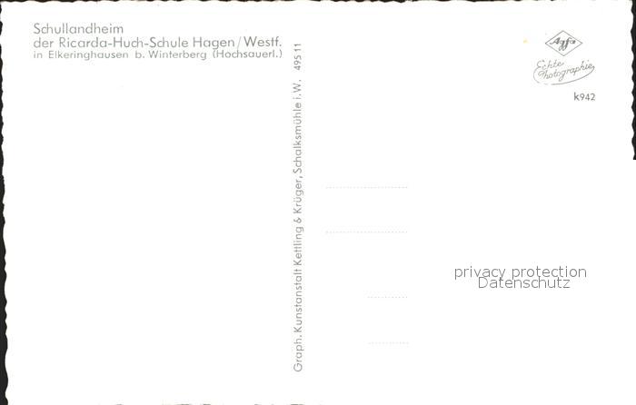 72057420 Elkeringhausen Winterberg Schullandheim der Ricarda Huch Schule Hagen postalisch nicht gelaufen Erhaltung siehe scans KatCode: 11110005958048