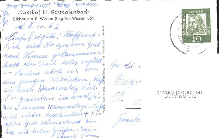 72311825 alte Postkarte Elkhausen Gasthof H. Schmalenbach postalisch gelaufen Erhaltung siehe scans KatCode: 11110007132117