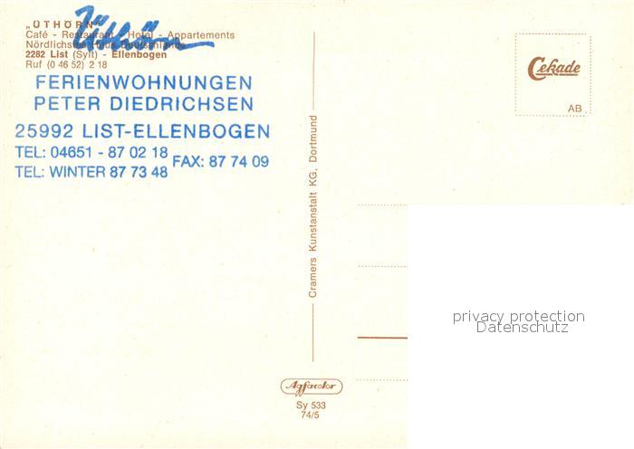 73323060 Ellenbogen Sylt Cafe Restaurant Hotel uethoern Fliegeraufnahme postalisch nicht gelaufen Erhaltung siehe scans [FriedD77] KatCode: 11110001054133
