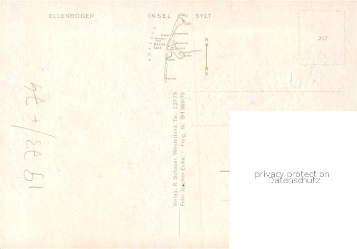 73170612 Ellenbogen Sylt Fliegeraufnahme postalisch nicht gelaufen Erhaltung siehe scans [PaolaD17] KatCode: 11110001054133