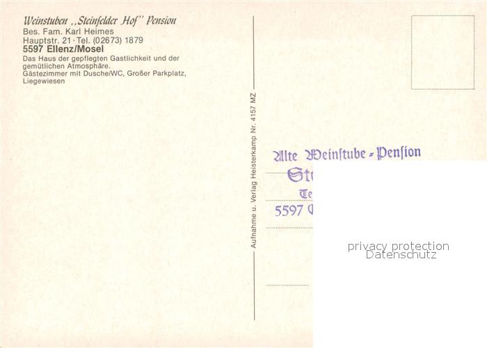 73717173 Ellenz Weinstuben Steinfelder Hof Pension postalisch nicht gelaufen Erhaltung siehe scans [WerneD78] KatCode: 11110007135025