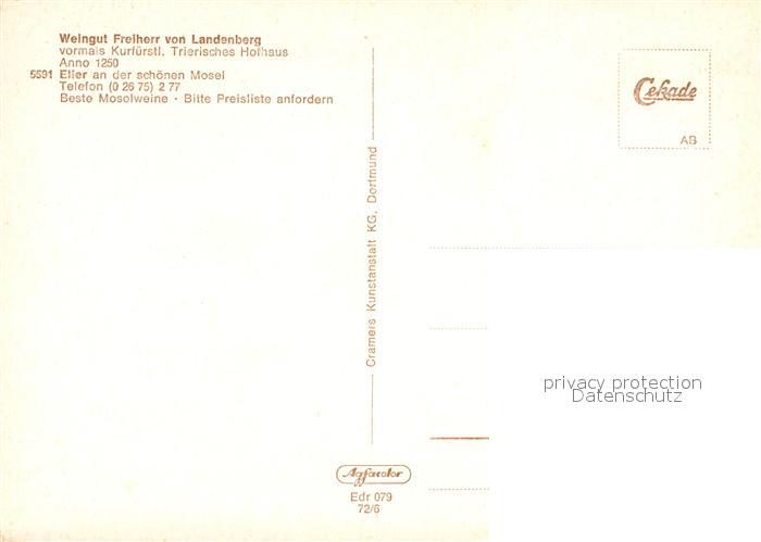 72940047 Eller Mosel Weingut Freiherr von Landenberg postalisch nicht gelaufen Erhaltung siehe scans [FriedD77] KatCode: 11110007135024