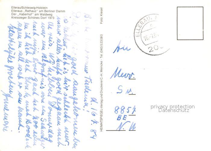 72958274 alte Postkarte Ellerau Holstein Elleraus Rathaus am Berliner Damm Haberhof am Waldweg Kreissieger Schoenes Dorf 1973 postalisch gelaufen Erhaltung siehe scans [FriedD77] KatCode: 11110001060019