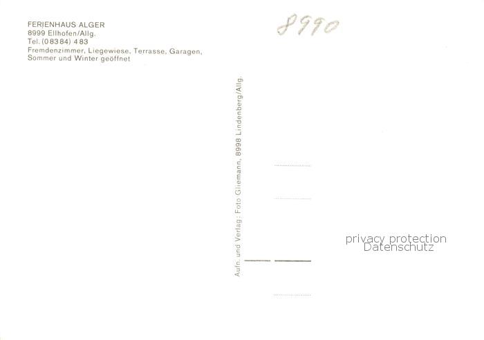 73852785 Ellhofen Allgaeu Ferienhaus Alger Gartenterrasse postalisch nicht gelaufen Erhaltung siehe scans [WerneD78] KatCode: 11110009776129