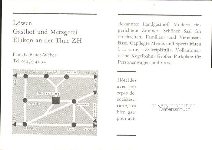 11641300 Ellikon Thur Gasthof Metzgerei Loewen Restaurant Kegelbahn Flagge postalisch nicht gelaufen Werbekarte (keine Postkarte) Erhaltung siehe scans KatCode: 11470260910506