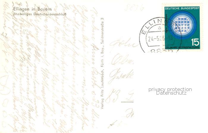 73835085 alte Postkarte Ellingen Bayern Ehem Deutschordensschloss postalisch gelaufen Erhaltung siehe scans [WerneD78] KatCode: 11110009577125