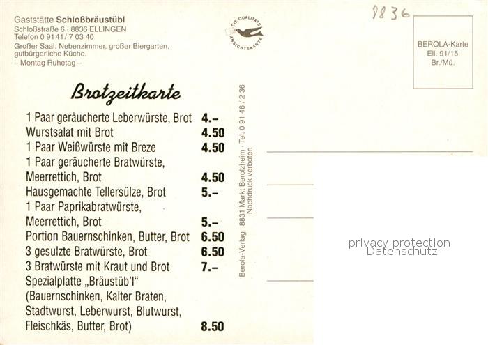 73834535 Ellingen Bayern Gaststaette Schlossbraeustuebl Grosser Saal Nebenzimmer postalisch nicht gelaufen Erhaltung siehe scans [WerneD78] KatCode: 11110009577125