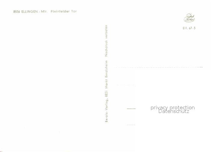 72821612 Ellingen Bayern Pleinfelder Tor postalisch nicht gelaufen Erhaltung siehe scans [AndreD76] KatCode: 11110009577125