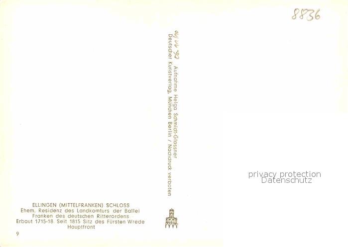 72915384 Ellingen Bayern Schloss postalisch nicht gelaufen Erhaltung siehe scans [WerneD78] KatCode: 11110009577125