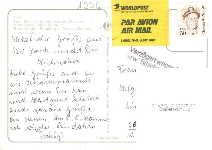 72926915 old postcard Ellis Island New York Main Entrance Peopling of America Exhibit postalisch gelaufen Erhaltung siehe scans [NatalD47] KatCode: 14140