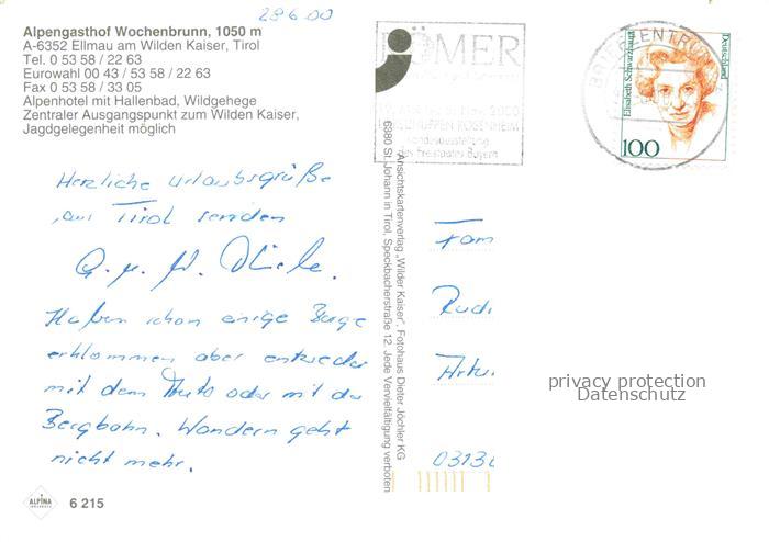 74110410 alte Postkarte Ellmau Elmau Tirol AT Alpengasthof Wochenbrunn postalisch gelaufen Erhaltung siehe scans [WerneD78] KatCode: 11390335070509