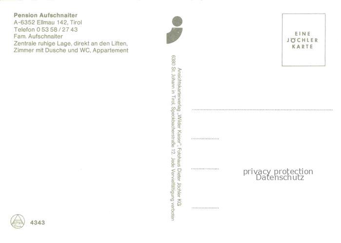 74092598 Ellmau Elmau Tirol AT Pension Aufschnaiter postalisch nicht gelaufen Erhaltung siehe scans [WerneD78] KatCode: 11390335070509
