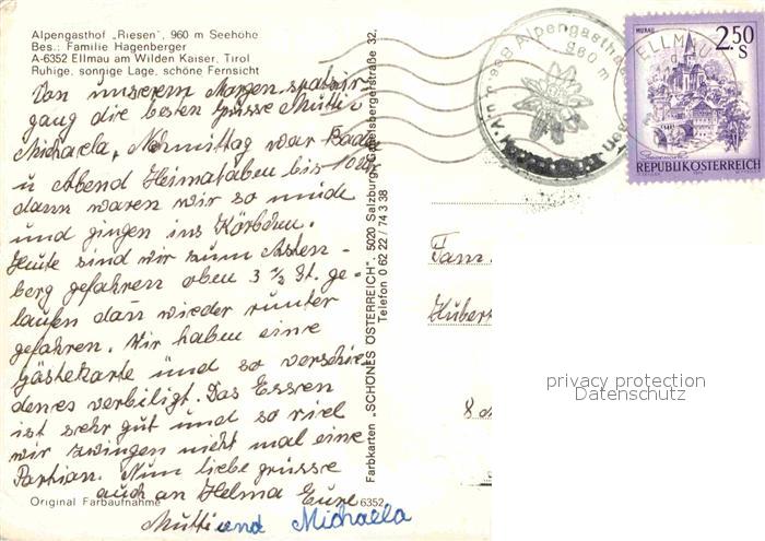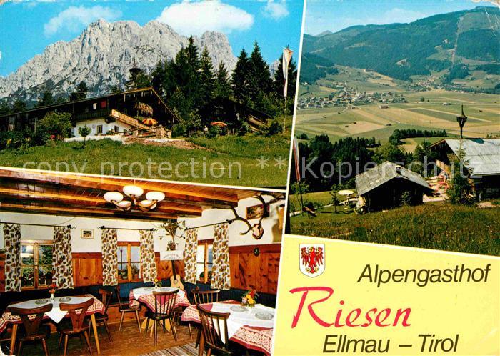 72653552 alte Postkarte Ellmau Tirol Alpengasthof Riesen Gastraum Wilder Kaiser Panorama postalisch gelaufen Erhaltung siehe scans [WerneD78] KatCode: 11390335070509