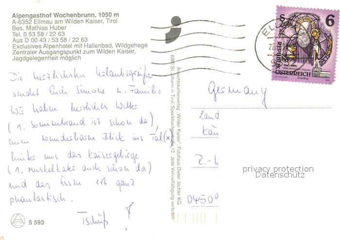 73046368 alte Postkarte Ellmau Tirol Alpengasthof Wochenbrunn postalisch gelaufen Erhaltung siehe scans [KathaD81] KatCode: 11390335070509
