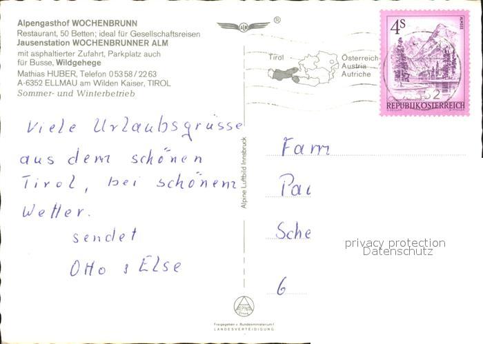 72570733 alte Postkarte Ellmau Tirol Alpengasthof Wochenbrunn postalisch gelaufen Erhaltung siehe scans [AndreD76] KatCode: 11390335070509