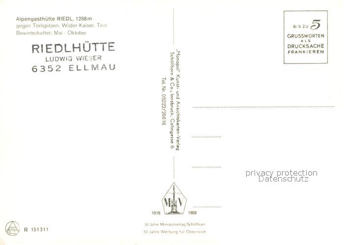73091591 Ellmau Tirol Alpengasthuette Riedl postalisch nicht gelaufen Erhaltung siehe scans [KathaD81] KatCode: 11390335070509