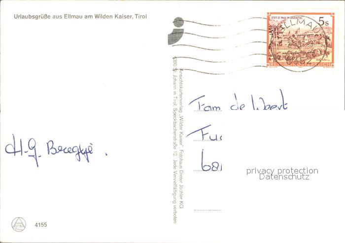 72092212 alte Postkarte Ellmau Tirol am Wilden Kaiser Panorama Viehtraenke Dorfpartie postalisch gelaufen Erhaltung siehe scans KatCode: 11390335070509
