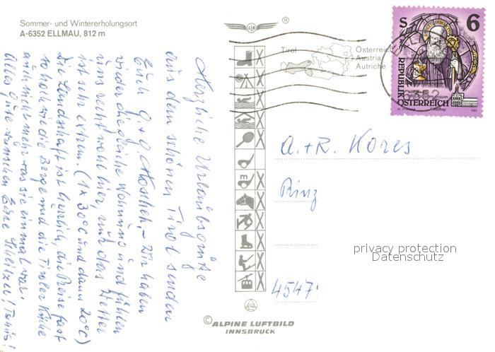 72942984 alte Postkarte Ellmau Tirol Fliegeraufnahme postalisch gelaufen Erhaltung siehe scans [KathaD81] KatCode: 11390335070509
