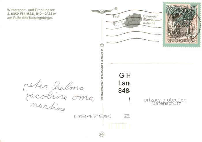 73054440 alte Postkarte Ellmau Tirol Fliegeraufnahme Kaisergebirge Winterlandschaft postalisch gelaufen Erhaltung siehe scans [KathaD81] KatCode: 11390335070509