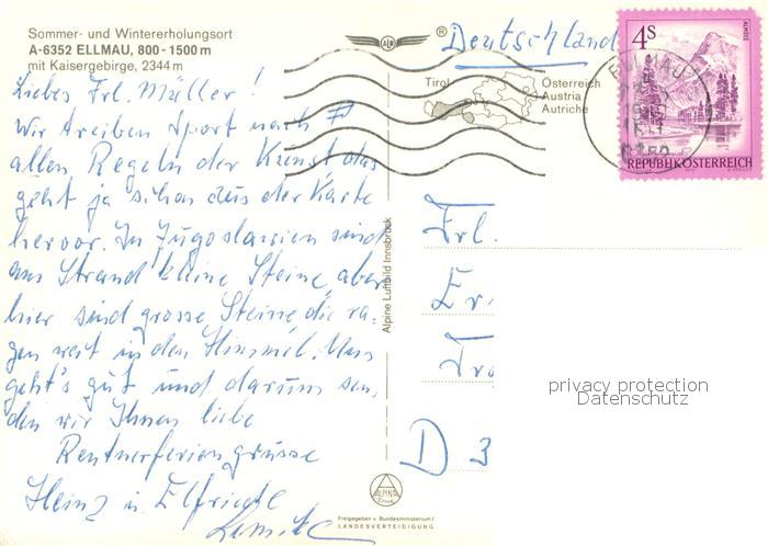 73753805 alte Postkarte Ellmau Tirol Fliegeraufnahme mit Kaisergebirge postalisch gelaufen Erhaltung siehe scans [WerneD78] KatCode: 11390335070509