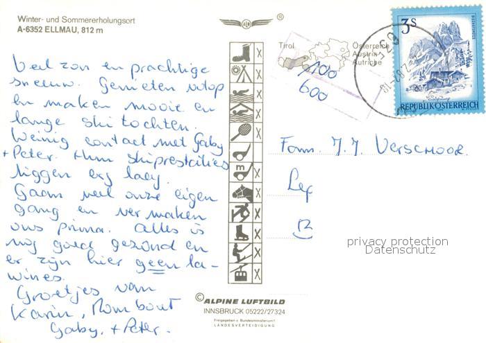 73049425 alte Postkarte Ellmau Tirol Fliegeraufnahme Winter postalisch gelaufen Erhaltung siehe scans [KathaD81] KatCode: 11390335070509