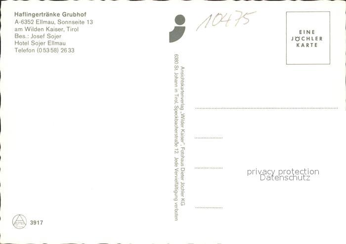 72113801 Ellmau Tirol Haflingergetraenke Grubhof am Wilden Kaiser postalisch nicht gelaufen Erhaltung siehe scans KatCode: 11390335070509