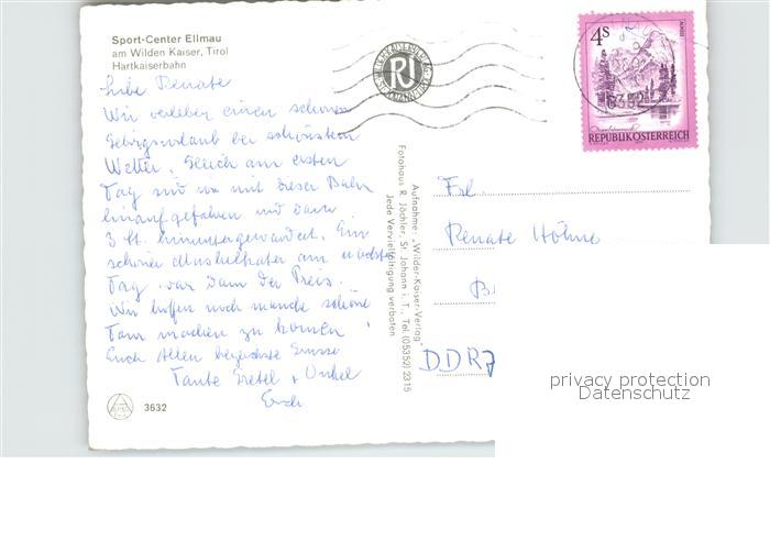 72528209 alte Postkarte Ellmau Tirol Hartkaiserbahn postalisch gelaufen Erhaltung siehe scans KatCode: 11390335070509