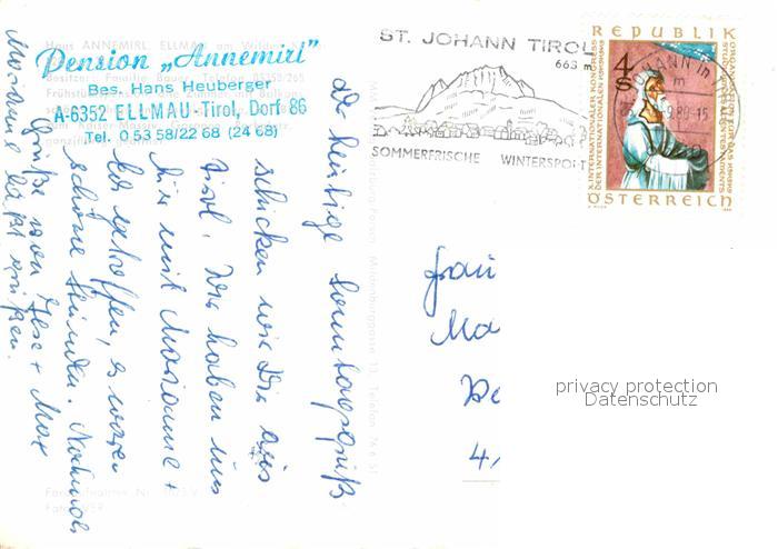 72679919 alte Postkarte Ellmau Tirol Haus Annemirl Pension postalisch gelaufen Erhaltung siehe scans [LiesaD40] KatCode: 11390335070509