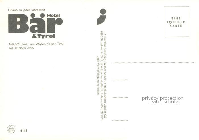 73033375 Ellmau Tirol Hotel Baer postalisch nicht gelaufen Erhaltung siehe scans [PaolaD17] KatCode: 11390335070509