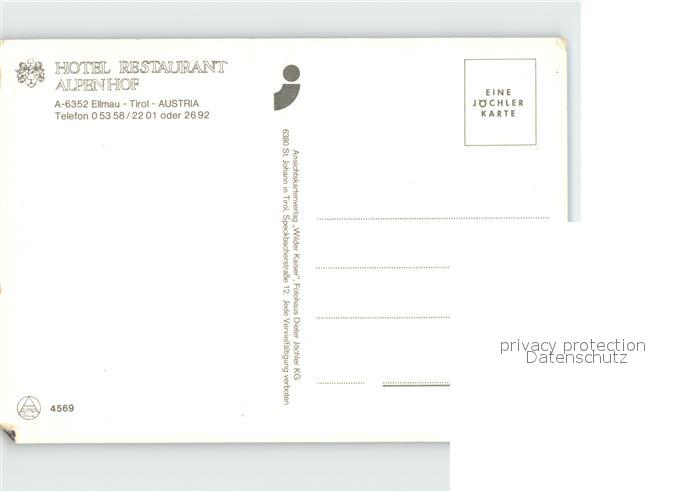 72331605 Ellmau Tirol Hotel Restaurant Alpenhof postalisch nicht gelaufen Erhaltung siehe scans KatCode: 11390335070509
