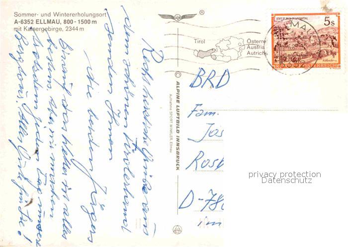42622185 alte Postkarte Ellmau Tirol mit Kaisergebirge Fliegeraufnahme postalisch gelaufen Erhaltung siehe scans [WerneD78] KatCode: 11390335070509